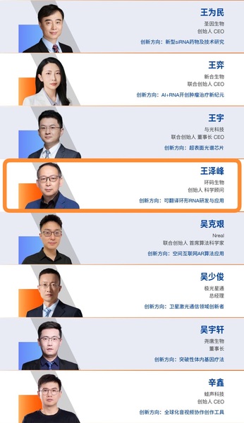 环码生物科学创始人王泽峰教授荣获2023年度科创家称号。